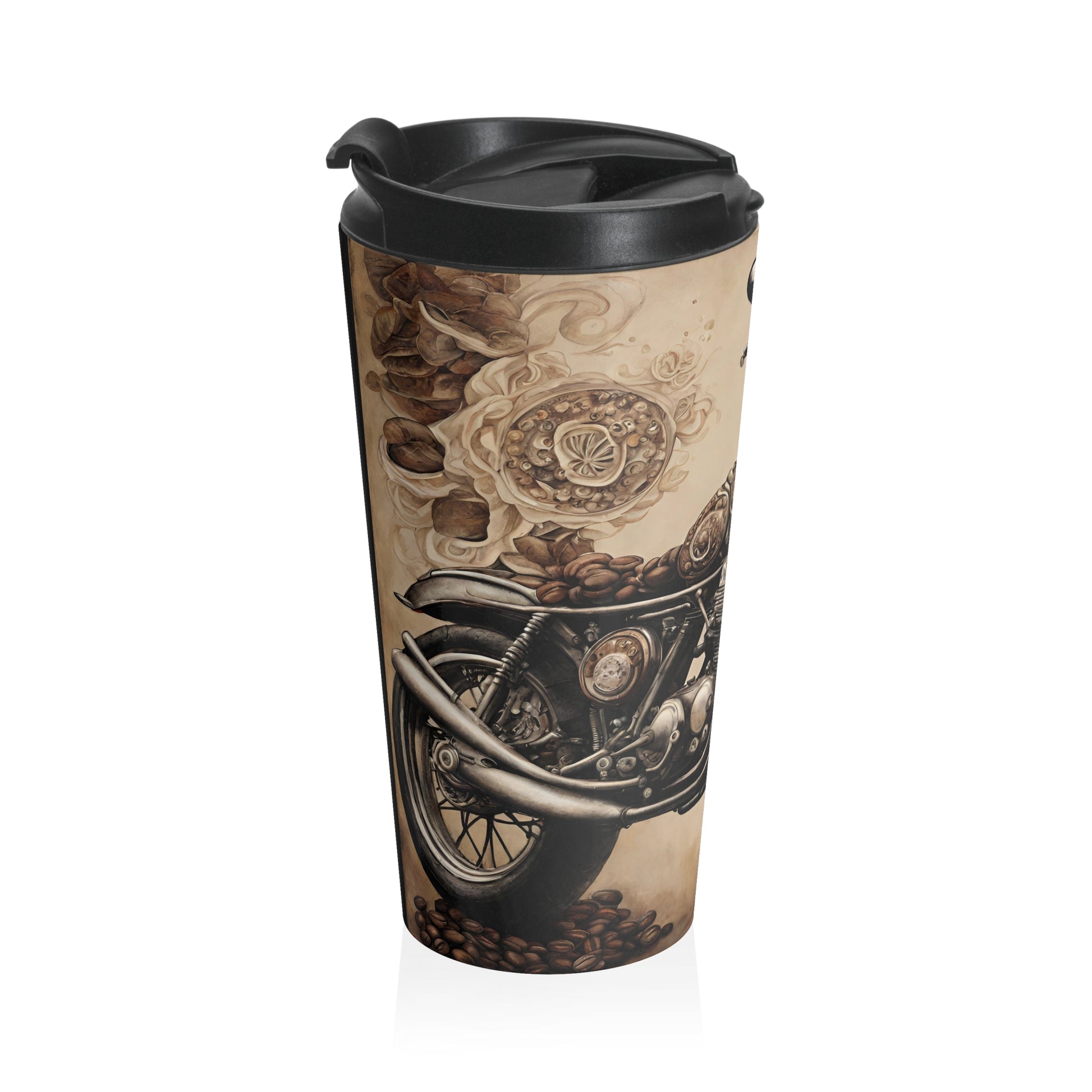 Irreplaceable item for a busy everyday life, this stainless steel mug will keep drinks at the right temperature for hours on the go. High quality printing makes it an appreciated gift to every true coffee or tea lover. .: Materials: 100% vacuum insulated stainless steel body, 100% black screw on plastic lid with a flip top .: One size: 15oz (0.44 l) .: Rounded corners